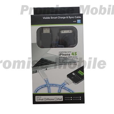 Кабель USB Apple iPhone 2/3/4 плоский светящийся <черно-фиолетовый>