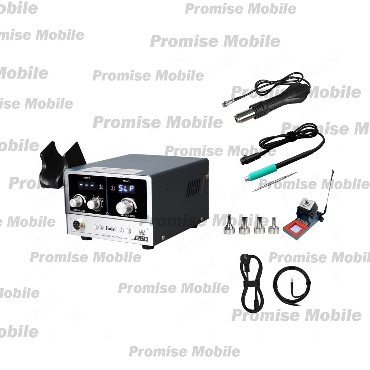 Паяльная станция Kaisi 8521P (фен+паяльник) (800W, 1 ручка + 1 жало, 4 сопла)